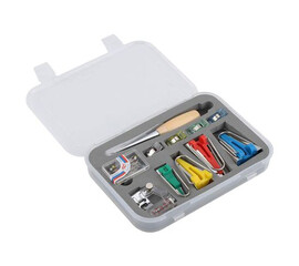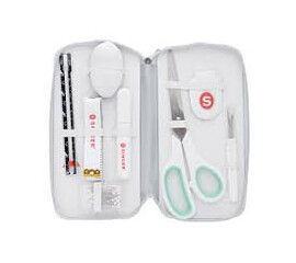 To ιδανικό κιτ ραπτικής για να αρχίσετε να γαζώνετε.   Έρχεται σε υφασμάτινο κουτί εύκολης μεταφοράς και περιέχει καρφίτσες, ψαλίδι, μεζούρα, ξηλωτήρι, καθαριστικό κλωστών, μαρκαδόρο,δερμάτινη δαχτυλίθρα και οδηγό μέτρησης σε ίντσες και εκατοστά.  Διαστάσεις 22 Χ 14 cm