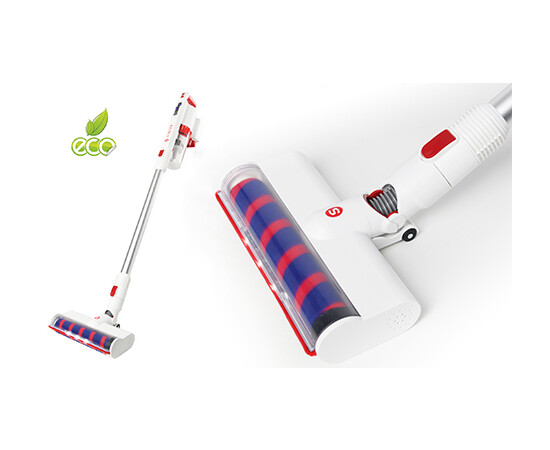 Η μπαταρία λιθίου 18,5 V (2200 mAh) δεν είναι μόνο αφαιρούμενη (εξασφαλίζοντας εύκολη επαναφόρτιση και ανεξάρτητη από το σώμα της συσκευής) και έχει αυτονομία 35 λεπτών σε τυπική λειτουργία χρήσης. Ένα LED τοποθετημένο στο πάνω μέρος της σκούπας, κοντά στη λαβή, υποδεικνύει την κατάσταση φόρτισης.