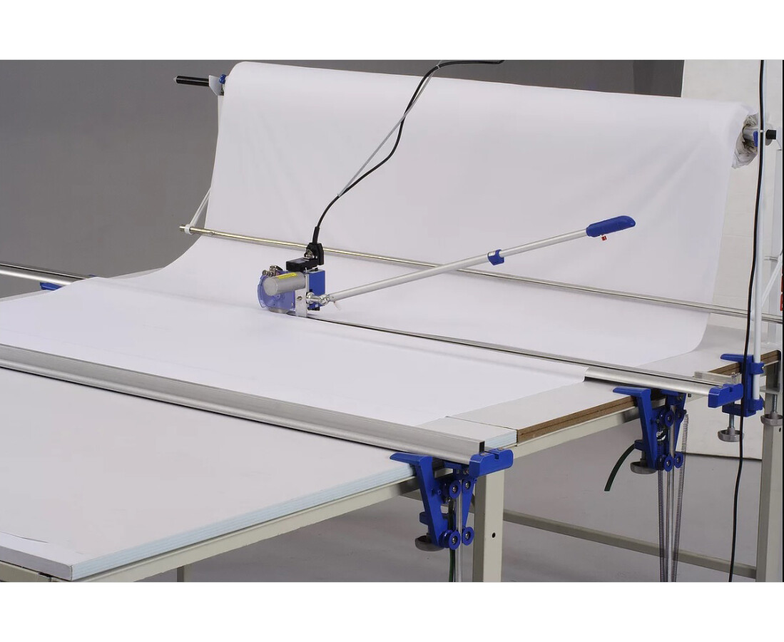 Το σύστημα περιλαμβάνει βάση τοποθέτησης ρολού κοπής υφάσματος, πιάστρα υφάσματος με το κοπτικό και επιπλέον έξτρα πιάστρα υφάσματος για την άκρη του πάγκου.